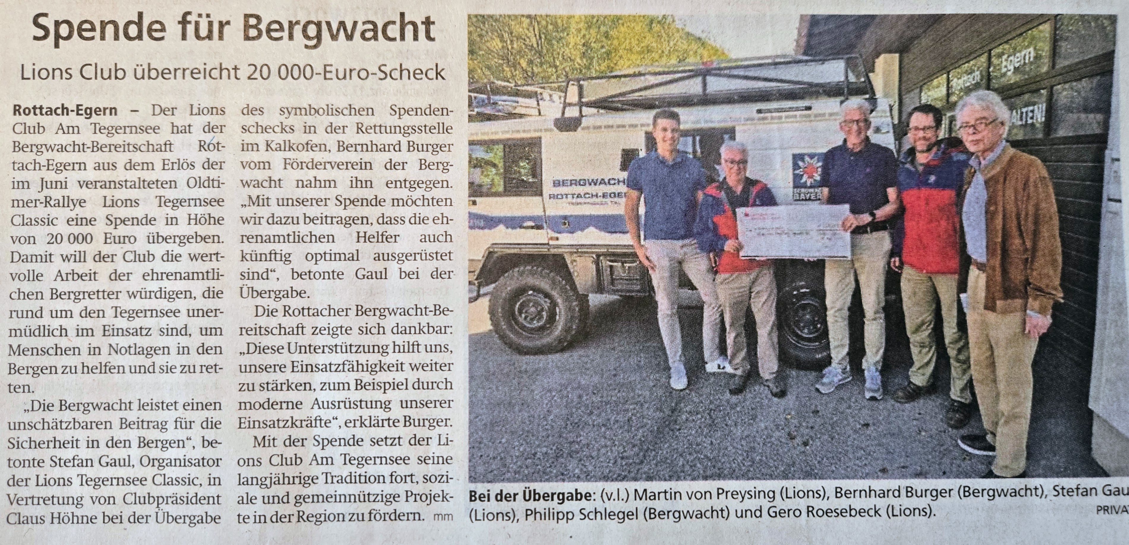 Tegernseer Zeitung vom 18.07.2024 - Hilfreiche Rallye Lionsclub spendet 24.000 Euro für Hospiz